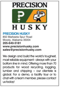 Precision Husky Corporation has manufactured wood waste processing equipment for over 50 years. The ProGrind line of waste wood tub and horizontal grinders came to Precision through the acquisition of the Recycling Equipment Division of the Toro Company. “We’ve improved the line and added additional products,” noted Steve Briscoe, sales manager. Precision manufactures six models of tub style grinders and three models of horizontal style grinders. Tub style grinders range from the 200 HP ProGrind 900 to the 1200 HP ProGrind 5200. The ProGrind 5200 and its smaller sister, the ProGrind 4000 are offered with or without a Husky XL 120 Knuckle Boom Loader attached. The horizontal style machines are offered with horse power ratings from 500 to 1050. All ProGrind machines offer trailer or track mounted and stationary units with diesel or electric power. “Precision also uses the efficient PT Tech hydraulic clutch and system. The ProGrind line provides the most maintenance friendly machines on the market today, regarding ease of set up and transport. Precision Husky strives to always be on the cutting edge of technology, to provide user friendly features and operational excellence. So, we are redesigning of our horizontal style machines to increase efficiency and productivity and expect to reintroduce those products soon,” said Briscoe.